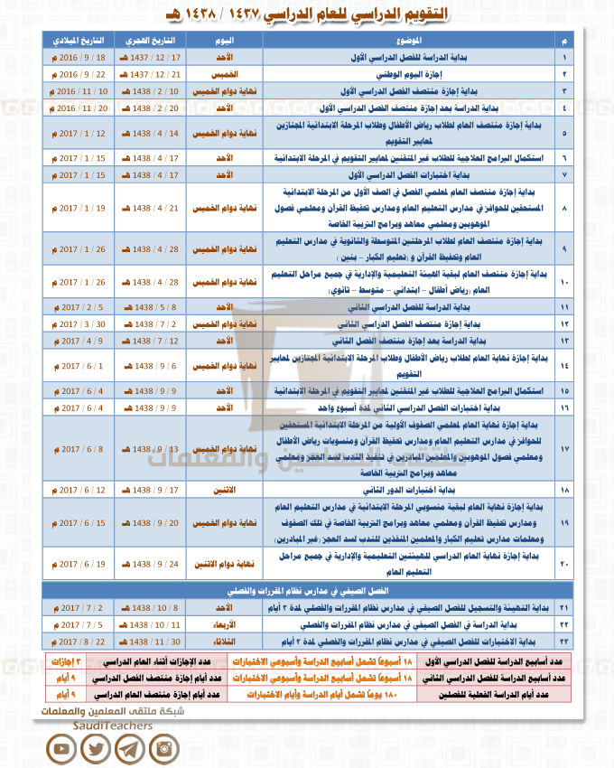 شبكة معلمي المملكة On Twitter توزيع الأسابيع الدراسي للفصل الدراسي الاول 1437 1438 هـ مع الشكر لمعده ومصممه الاستاذ تركي العامر